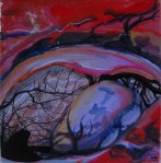 Well, despite all that, I’ve now wrecked the manicure I had yesterday by getting paint under my nails again for the second time in three months, to produce my second painting for the year (the one pictured here is the first). It feels great! I know I’ve got two solo shows of digital work to get cracking on, but these painterly episodes are re-inspiring my creativity. It’s got me thinking about the possibilities beyond the next exhibitions and just what I might be doing in 2012!