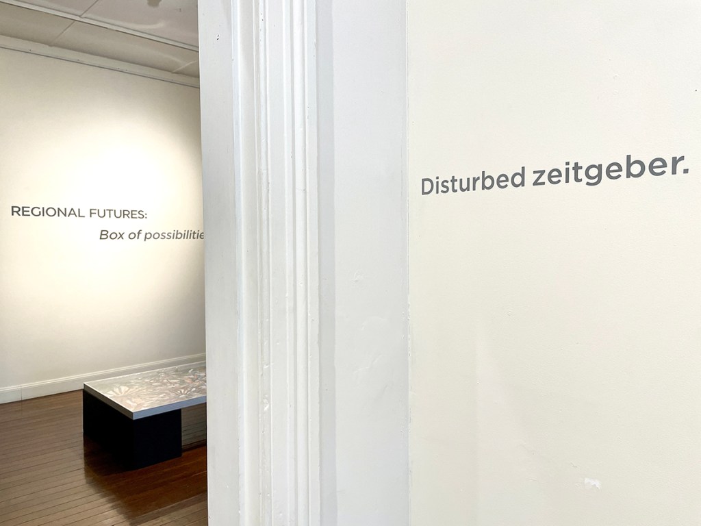 My space in the Regional Futures exhibition at MRAG has a minimalist aesthetic, sitting separately from the work of the other three artists. There are no visuals or colour as I wanted the focus to be on the sonic narratives. The only visual cue in the room is a single line of text running around two sides of the roomโthoughts and questions Iโve formed over the past year. As someone who started exhibiting as a visual artist, I understand the attraction to things that require little attention or energy to consume, even if they arenโt fully understood. This is how most people prefer to experience artโpassive consumption of something familiar, pretty or both. Sound challenges when it stands alone. Itโs not what regional audiences expect in their regional galleries, and it does require effort to engage with it. The thing is, our future is challenging and I want the mediums I use to reflect the work required of us to meet those challenges.