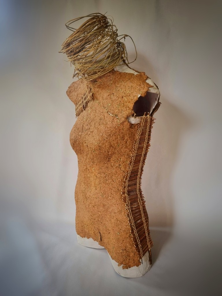Stead’s sculptural Embodiment series, representative of women’s forms, reimagines our place within the ecosystem, emphasising we are not separate or superior to it but an integral part. Each artwork underscores the need to adopt sustainable practices and live in harmony with Earth’s rhythms.