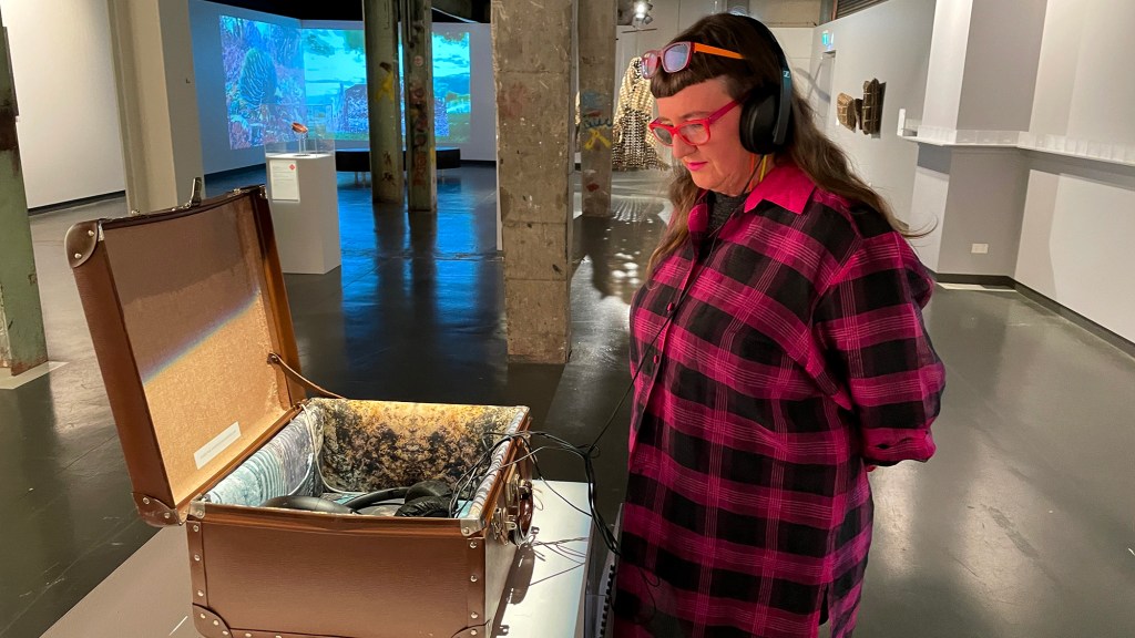 Working across the Western Plains and the Mid North Coast of New South Wales during her residency for Regional Futures, Kim V. Goldsmith’s gathered field recordings of more-than-human voices—bats, birds, fish and earthworms, and first-person audio stories, developing a body of work titled Vaticinor (The Augur). Goldsmith seeks to imagine what a world fuelled by zero-carbon renewables might sound like— where the opportunities lie, and how new ways of thinking, knowing and understanding might achieve a more entangled and abundant future for humans and more-than-humans.