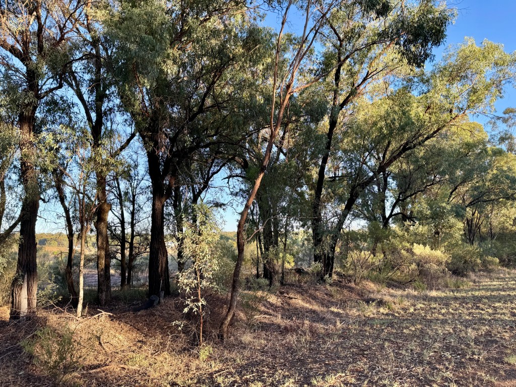 This regen area is one part of 15 percent of the property we fenced off 30 years ago. It’s an ephemeral wetland with a mix of Bimble Box, Yellow Box and River Red Gums. The River Reds are a relic population cut off from others. There’s understorey of Lignum and Nardoo.
