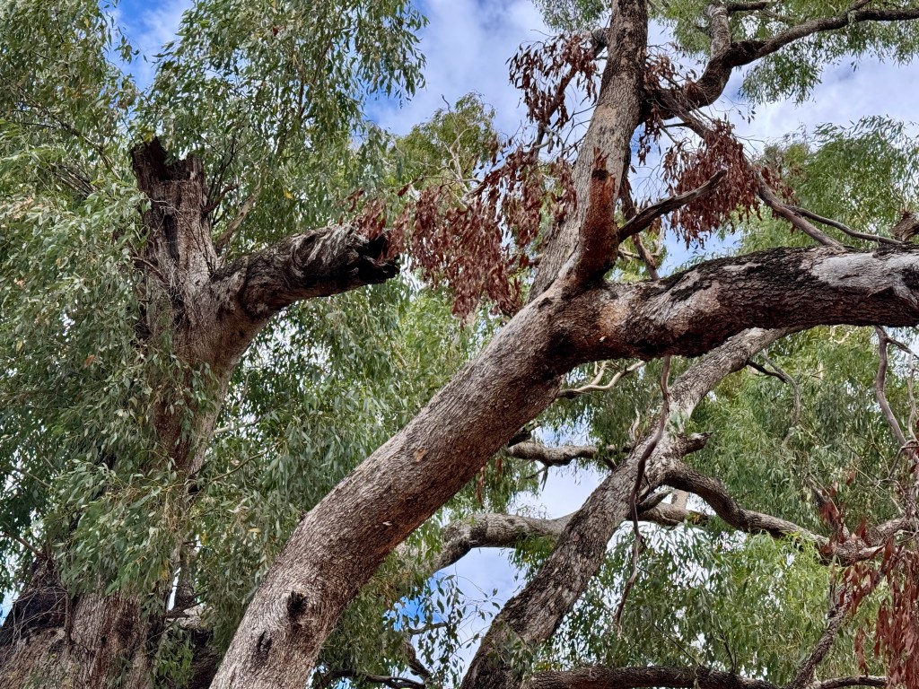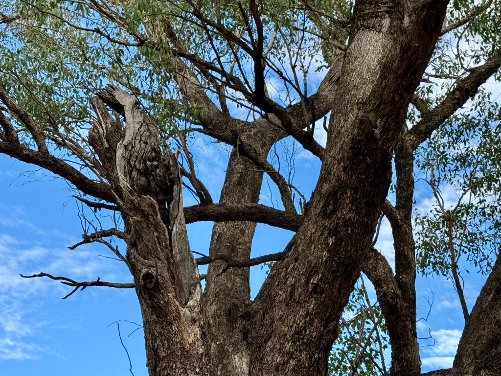 Between field trips to the Maynard’s farm, I walk the roads near home in the post-dawn hours of the morning, thinking about these issues. The roadsides here are populated with remnant dry sclerophyll forests (pictured below) of Western Grey Box, White Box, thickets of White Cypress Pine, the occasional Yellow Box, Buloak, Narrow-leaved Ironbark, Mugga Ironbark, small Kurrajongs, Wilga, and an understorey of Western Boobialla, various Wattles, Cassinia and Hopbush. It’s an isolated community, under threat. Amongst the grand, old giants towering above me, are smaller, narrow trunked juveniles, growing in the shade of parent trees. Below them, often nestled at the base, are toddlers or saplings of various species. It takes a village to raise a healthy forest.
