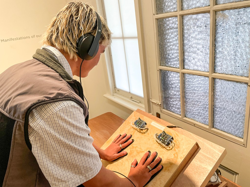 The exhibition was received very well, with mixed reactions with each of the works in the show. We did get a few comments of ‘Is this art?’ which is a great conversation starter. Your work had a lot of positive responses, with audiences connecting to soundscapes, storytelling and technology. The haptic hands worked well, with staff and volunteers encouraging visitors to engage with them, as many people were unsure about what would happen when they touched them. Social media helped with telling the story, and we had many visit after seeing your work online. We had 1399 visitors to the show which was great.